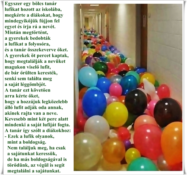 Egy néger kisfiú nézte a léggömbárust a vásárban. Az árus jó üzletember lévén eloldozott egy piros lufit, amely felszállt a magasba, és egy sereg reménybeli fiatal vásárlót vonzott oda. Aztán felengedett egy kéket, majd egy sárgát és végül egy fehéret is. Egymás után felszálltak a magasba, mígnem eltűntek a szem elől. A kis néger egy darabig álldogált egy fekete léggömb előtt, majd megkérdezte: - Uram, ha elengedné a feketét is, az is felszállna olyan magasra, mint a többi?